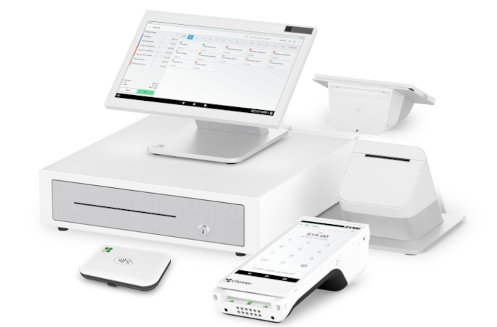 Clover Mini – Compact, countertop system with full-scale POS functionality that can connect to cash drawer.