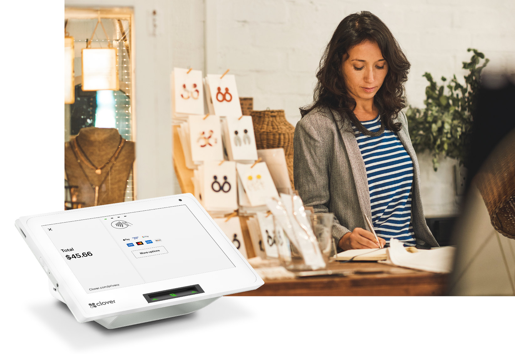 Owning a business can be demanding--from tracking inventory and supervising employees to taking orders and everything in between! That's why we’ve teamed up with Clover from Fiserv, a leading global provider of payments and financial technology solutions. Clover helps simplify your operations with a payment processing system and business management solution tailored to meet the unique needs of restaurants, retailers and services businesses.